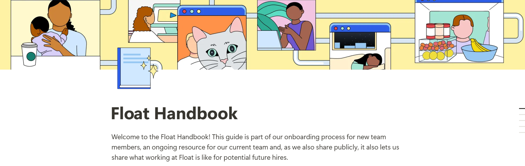 Welcome to the Float Handbook! This guide is part of our onboarding process for new team members, an ongoing resource for our current team and, as we also share publicly, it also lets us share what working at Float is like for potential future hires.