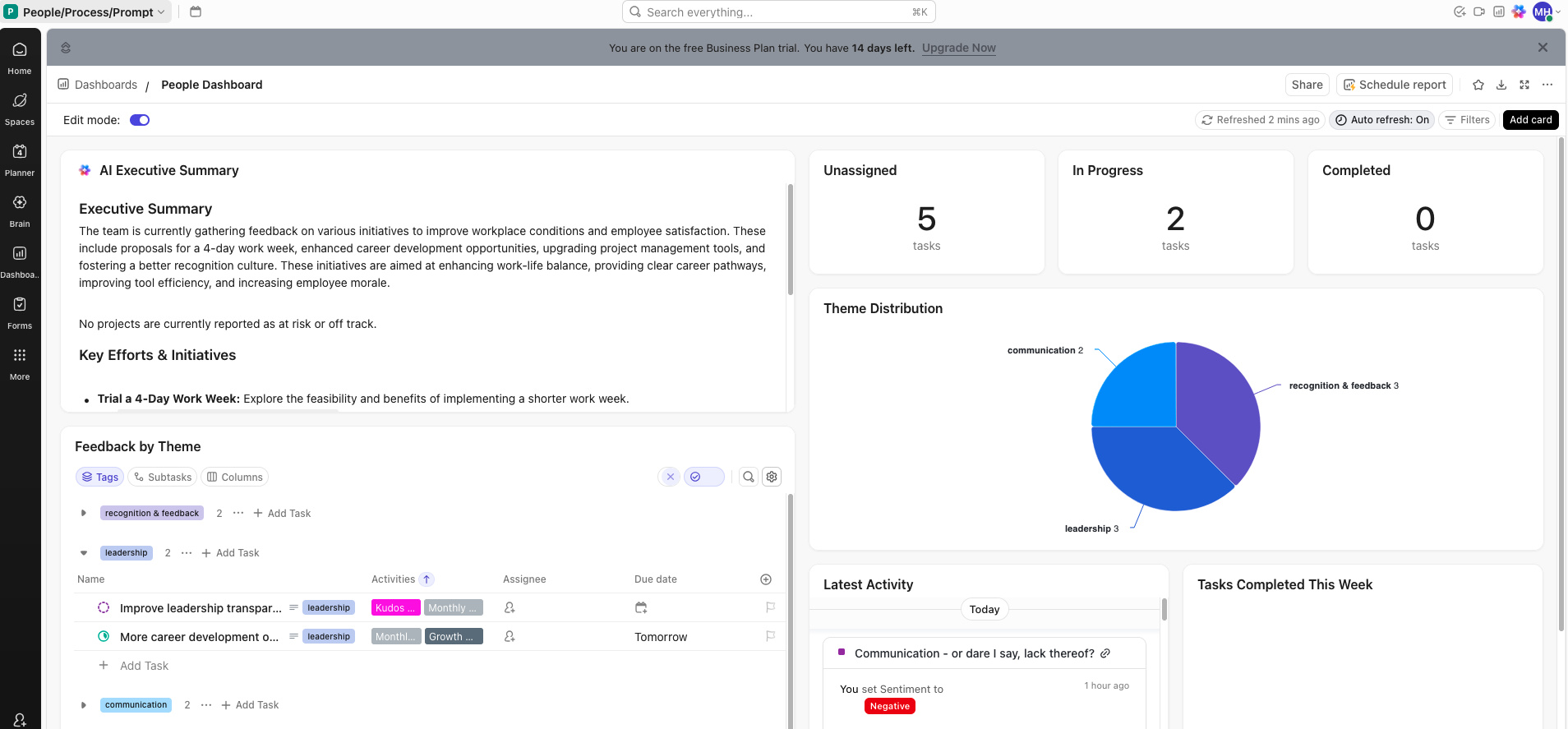 Too often People teams collect feedback (surveys, town halls, eNPS, exit interviews) that never makes it into action. This open build shows how to turn feedback into a prioritised roadmap using the project management tools you already have.