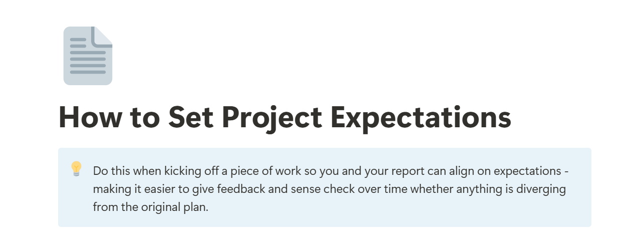 A checklist to help managers clearly set expectations at the start of a piece of work.