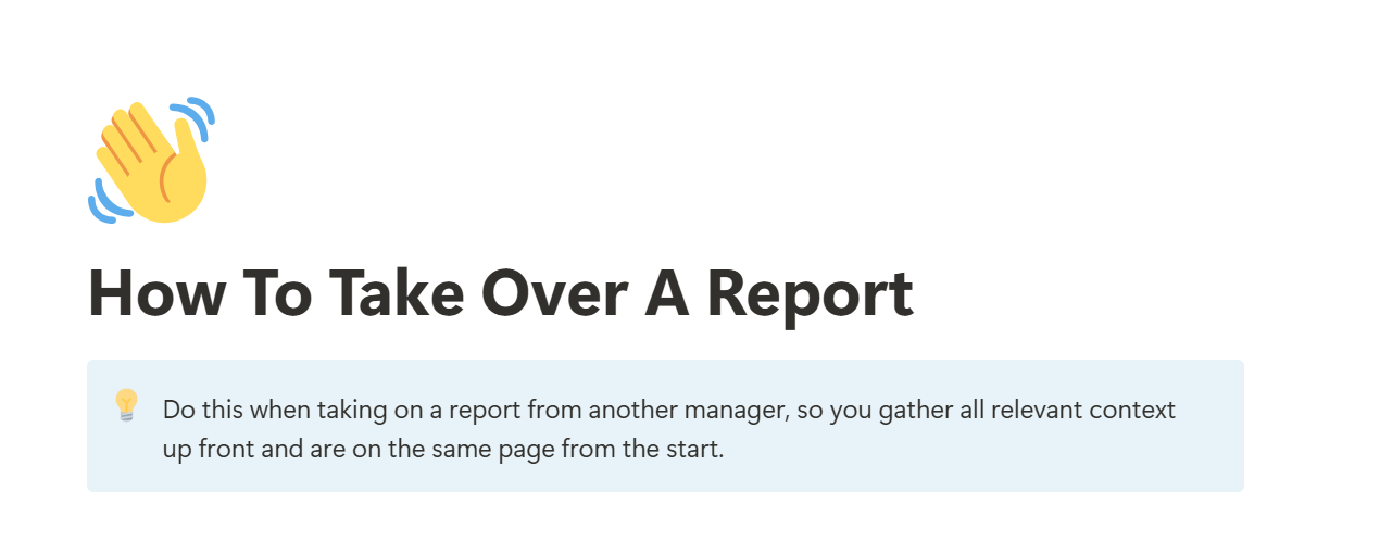 A checklist for managers when taking over a report from another manager.