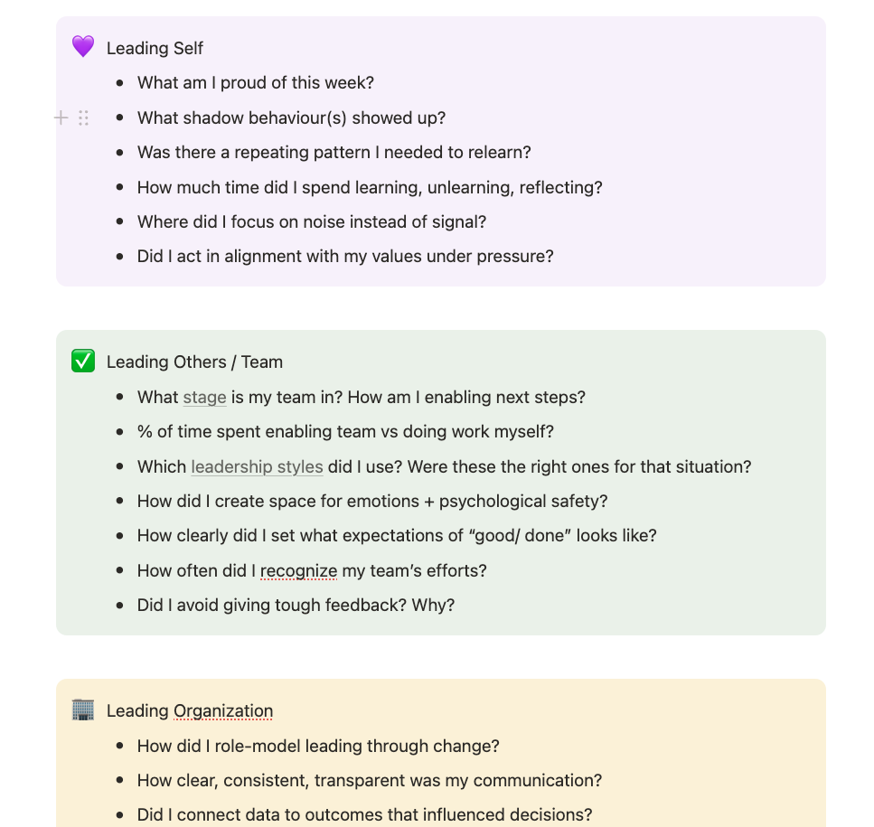The best leaders don’t just react to what happens day-to-day. They pause, reflect, and learn from their own patterns. Reflection creates the space to notice shadow behaviours, celebrate growth, and realign with values.