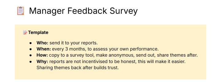 A short and snappy template of questions managers can send to their team on a regular cadence to get feedback.