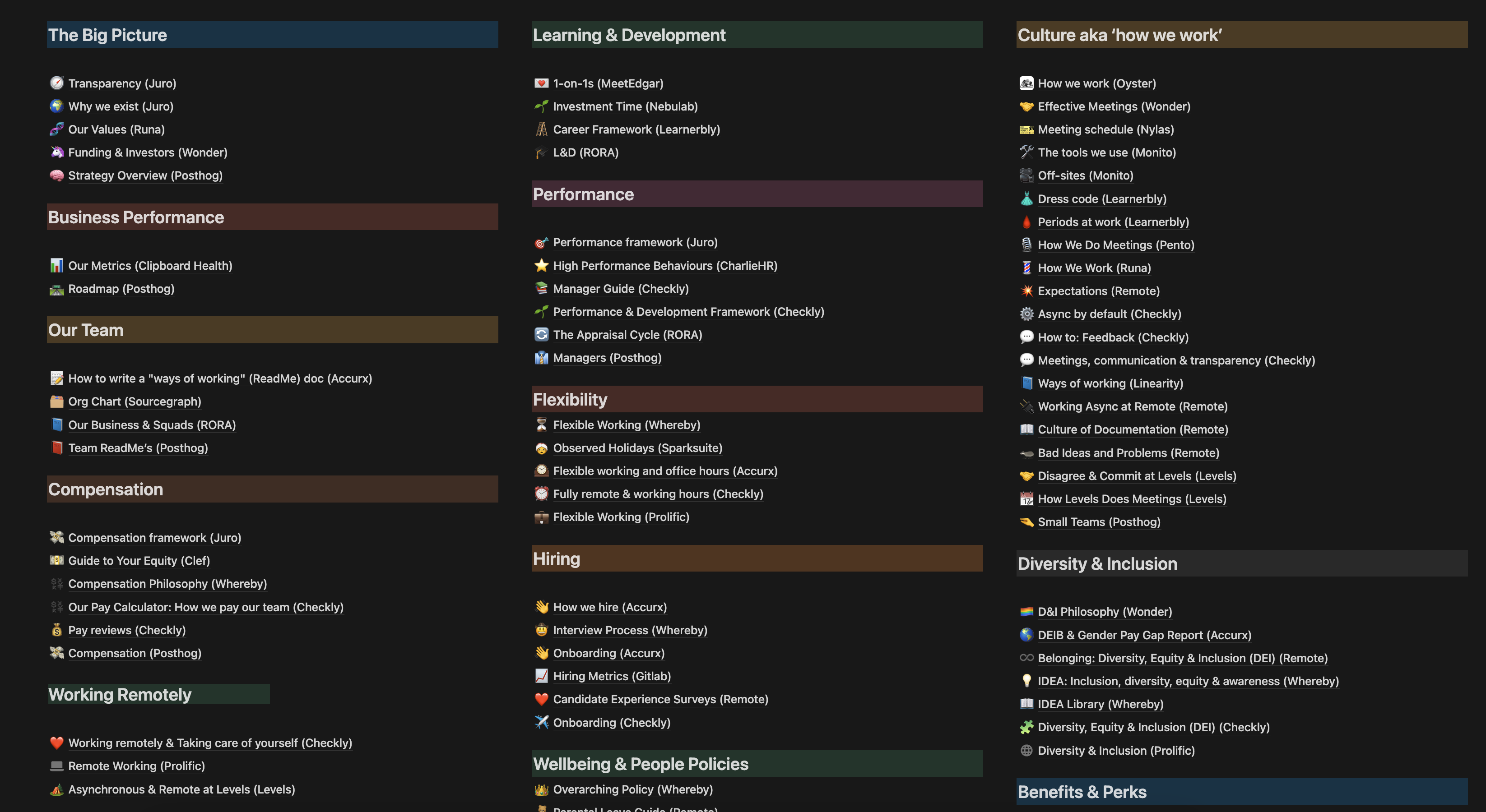 We have filled this template with as many possible subject / business areas that we can think of that could be useful to you but you can add/remove sections as you see fit, don't feel pressured to have to fill out every section. Also we've used real-life examples from other handbooks for you to use as inspiration.