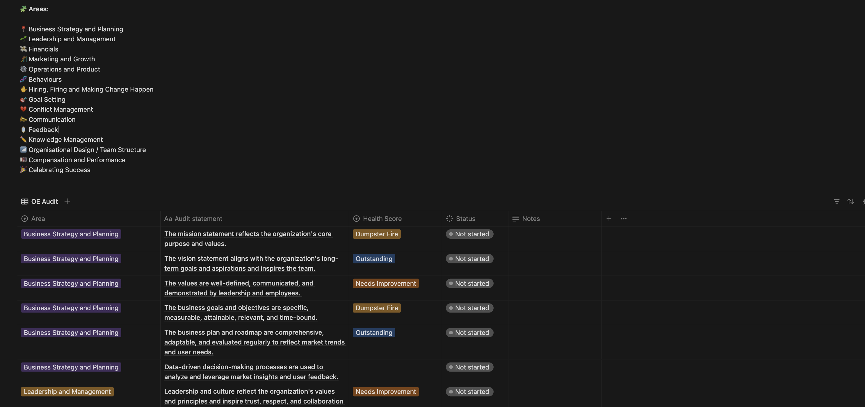 I developed this high level audit whilst working as a fractional COO with a People lens for startups and scale-ups to get a sense of where the opportunities are, what’s thought about and what’s not.