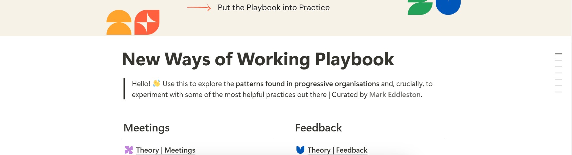Use this to explore the patterns found in progressive organisations and, crucially, to experiment with some of the most helpful practices out there | Curated by Mark Eddleston.