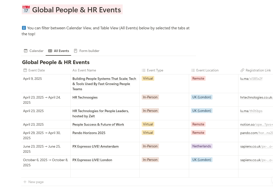 We created this because we found ourselves losing track of all the incredible People & HR events that were happening all over the world…so thought it’d be cool to build an open-source calender folks could add events to; whether they’re running them themselves or just attending.