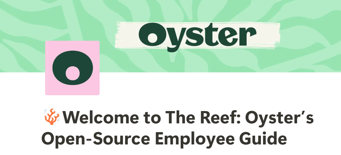 The Reef: Oyster's Open-Source Employee Guide is a set of public Notion pages that explain how we work at Oyster as a global, distributed, asynchronous organization.