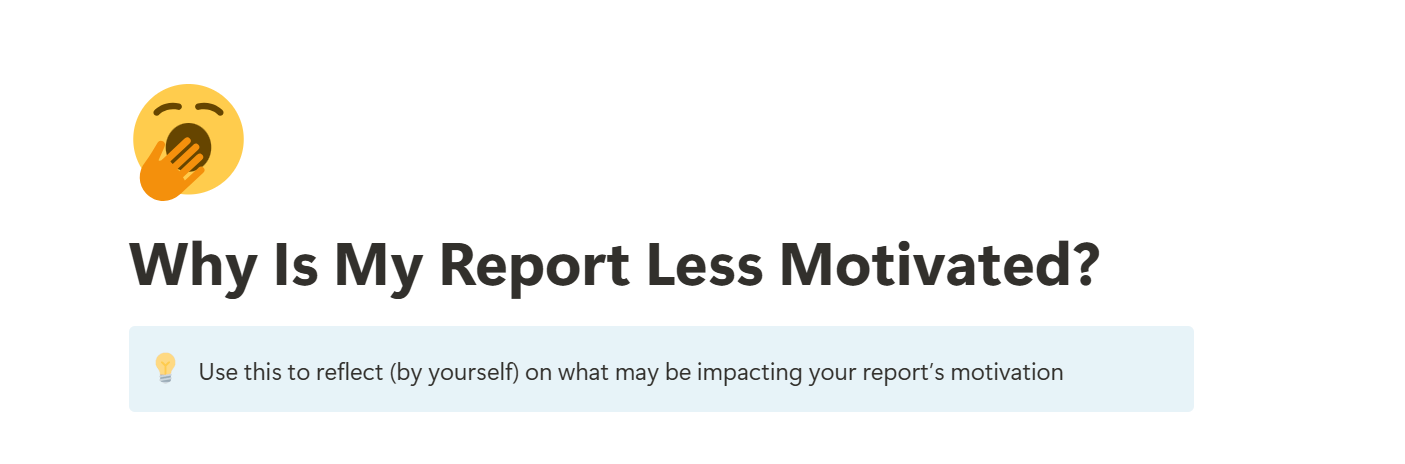 A guide to help managers explore what might be driving a drop in motivation in their report.